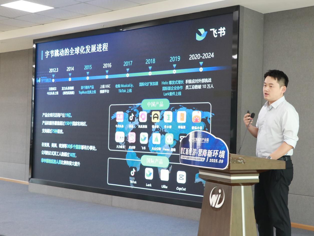 随后,深圳市轮动科技有限公司华西区域售前负责人程柏森受邀带来主题演讲,聚焦“用飞书打造新一代智能创新型组织”分享实践经验,赋能园区企业在跨部门协同办公、业务数据整合、工作流程自动化等场景的应用。