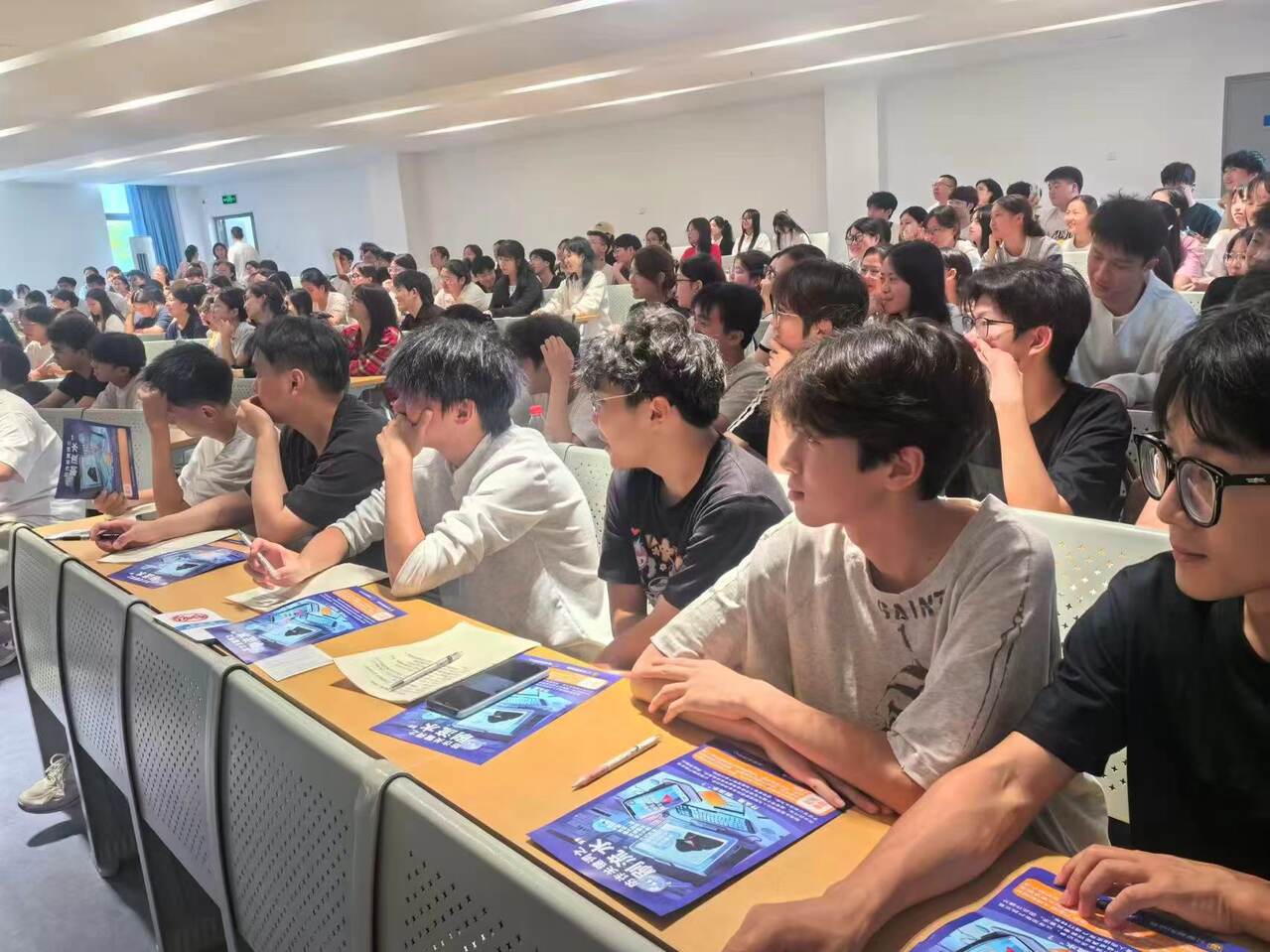 本次活动在学校阶梯教室举行,现场座无虚席。学生们全程认真聆听,在互动问答环节积极提问,围绕“如何辨别非法中介”“校园贷与正规助学贷款的区别”等问题与工作人员深入交流,进一步加深了对金融安全知识的理解。