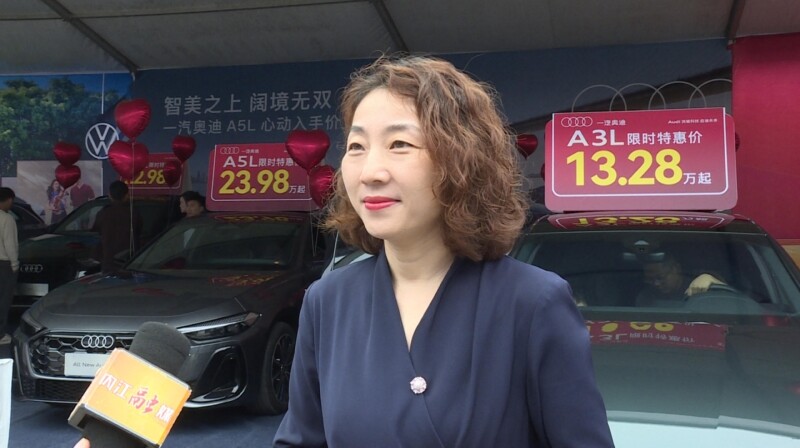 内江蓝池胜龙奥迪总经理李彦告诉记者:“今天胜龙奥迪给大家带来了全新的产品来到我们参展的现场,a5是我们今年全新上市的一款车型,这款车的话239800元起,并且它现在预定还有一个权益的礼包。希望把这样的福利带给我们内江的父老乡亲,大家能在车展现场选到心仪的车型。”