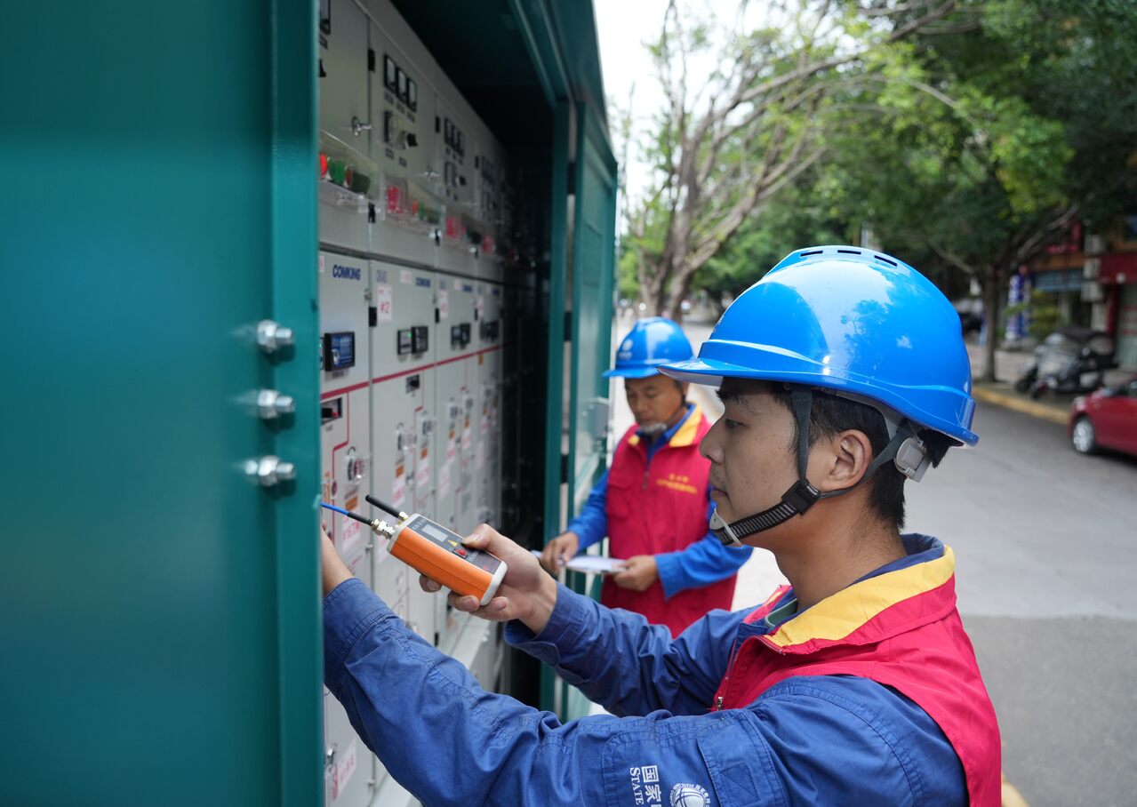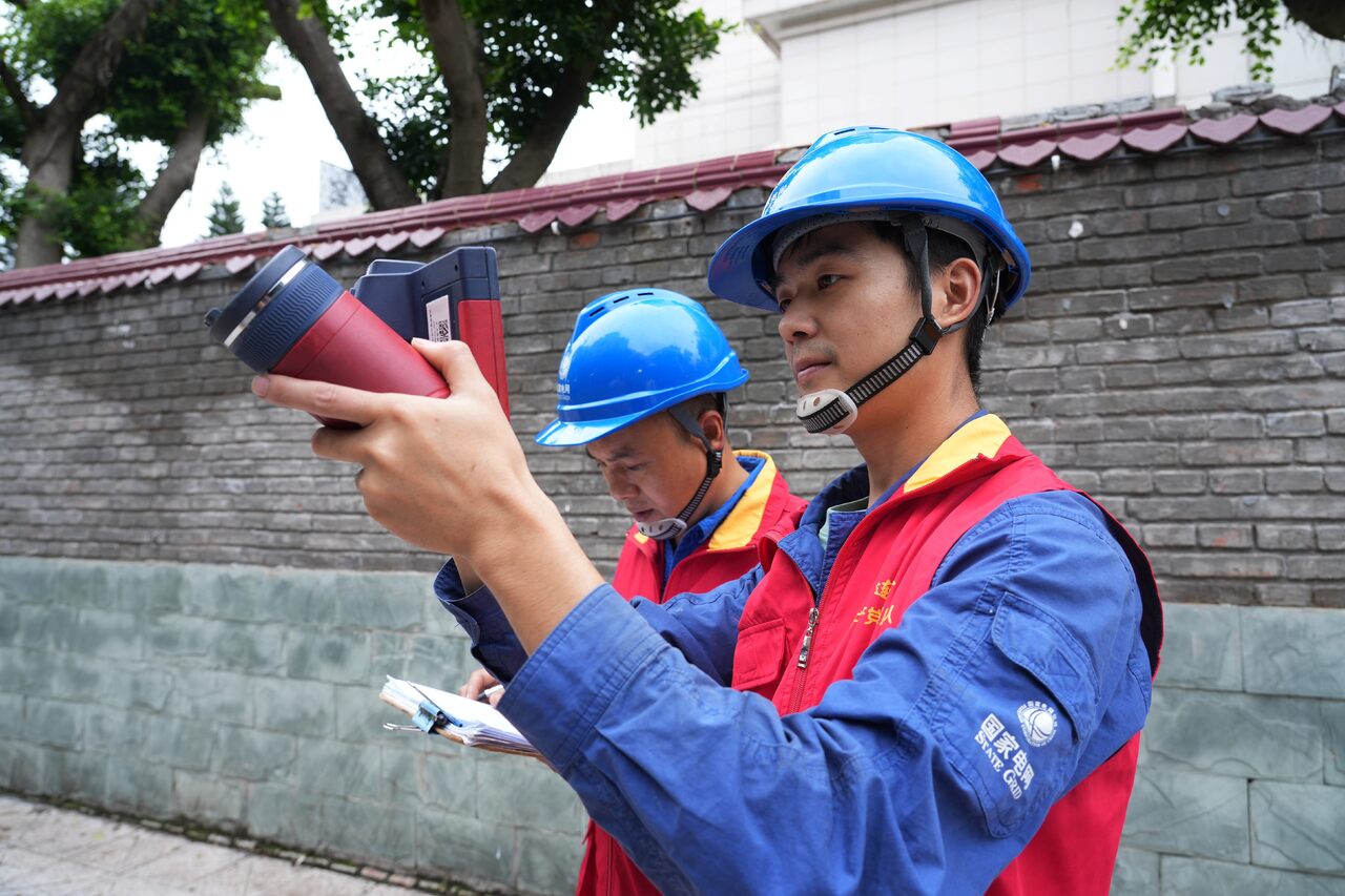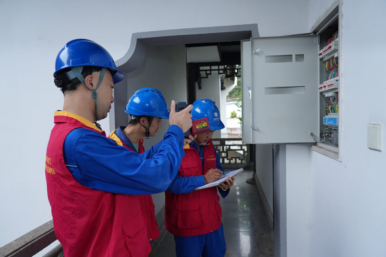 在大千园旅游景区,的队员们利用红外测温仪重点对景区照明、供电线路、输变电箱等设施进行安全运维检查,并详细记录设备运行数据,确保电力设备正常运行。