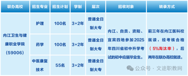 ②和内江卫生与健康职业学院联合举办“3 2”五年制高职。
