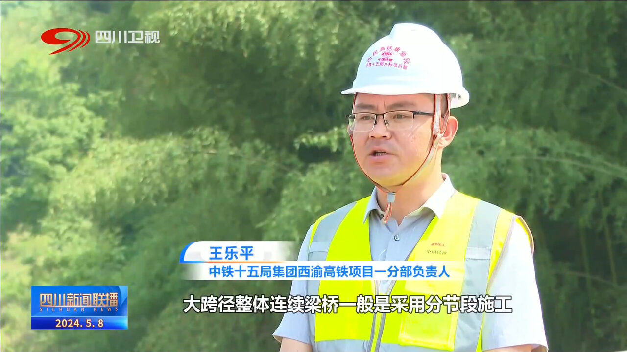 中铁十五局集团西渝高铁项目一分部负责人 王乐平:大跨径整体连续梁桥一般是采用分节段施工,每一节段称之为“块”,0号块就是桥梁最先浇筑的单元。龙潭水库特大桥连续梁共有4个0号块施工,后续我们项目将加大资源要素投入,马力全开,计划2024年年底前完成连续梁施工。